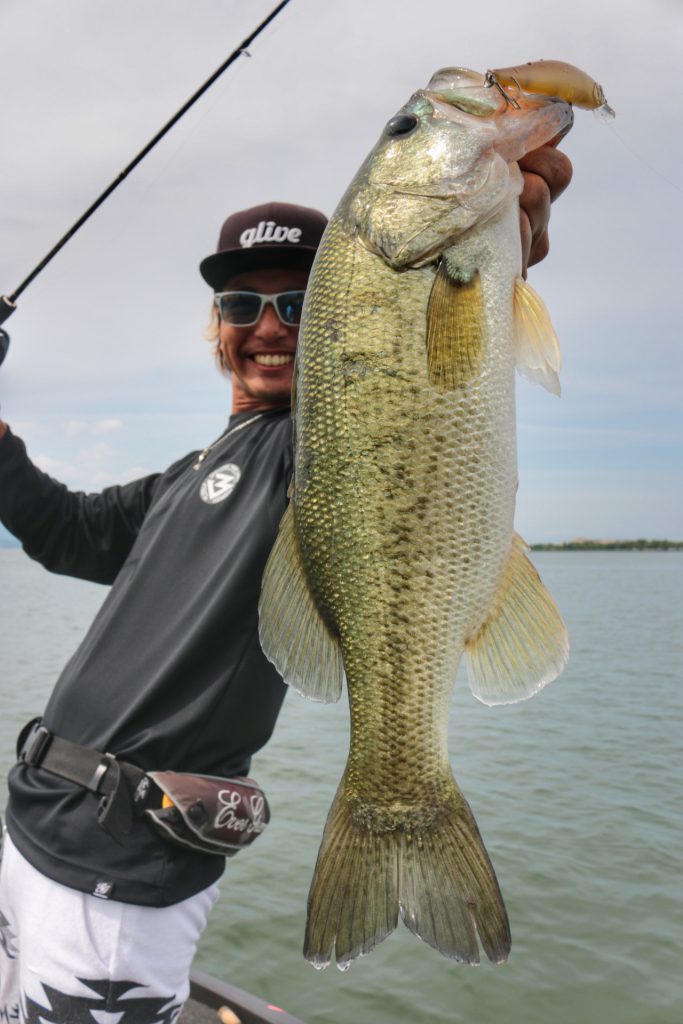 あきらかに太陽光が強くなってきたのでトップはやめてエビモエリアを見ているとベイトを追ったデカバス何匹かがボイル!!