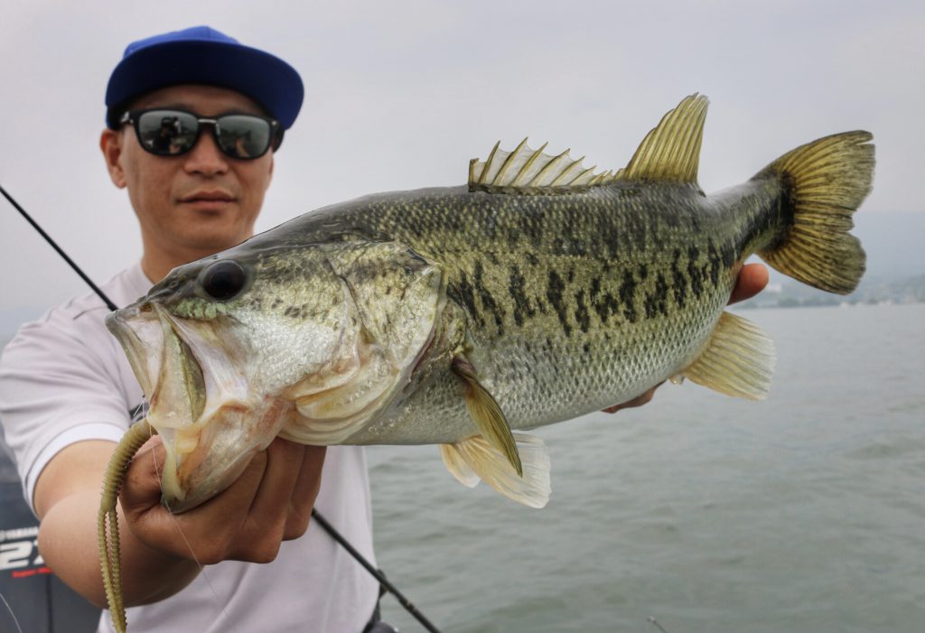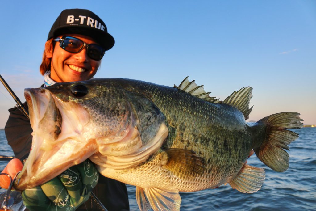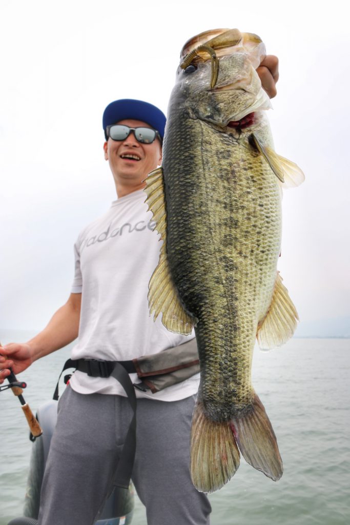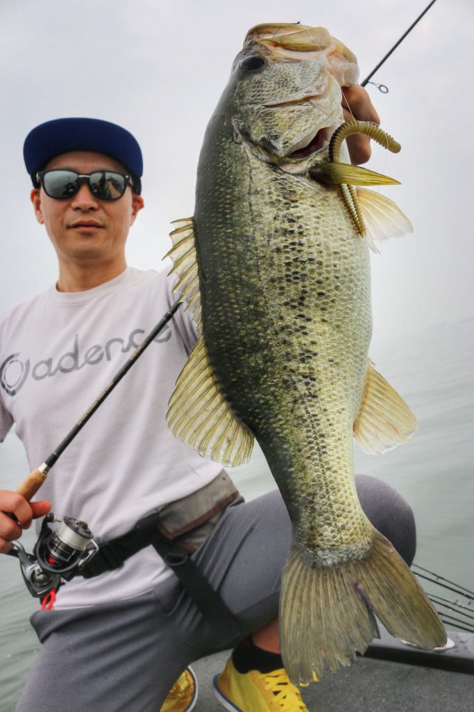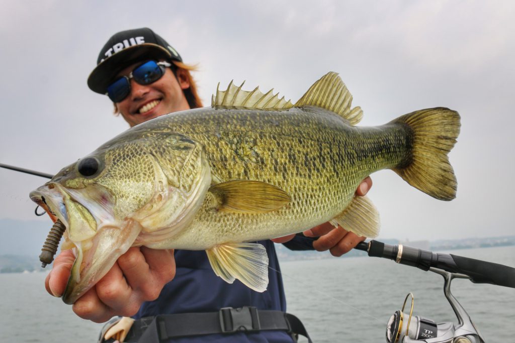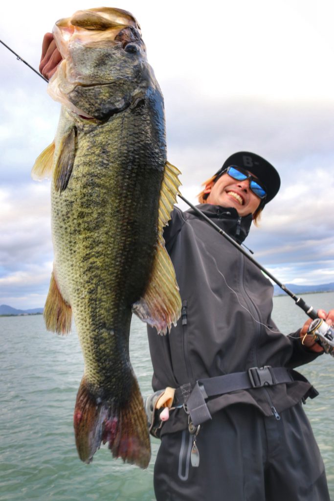 このバスは上の写真のバスとは違うけど、通常Hクラスのロッドではフッキングが決まりづらい時でもパワープラント71XXでやってみるとこの通り相性抜群!!