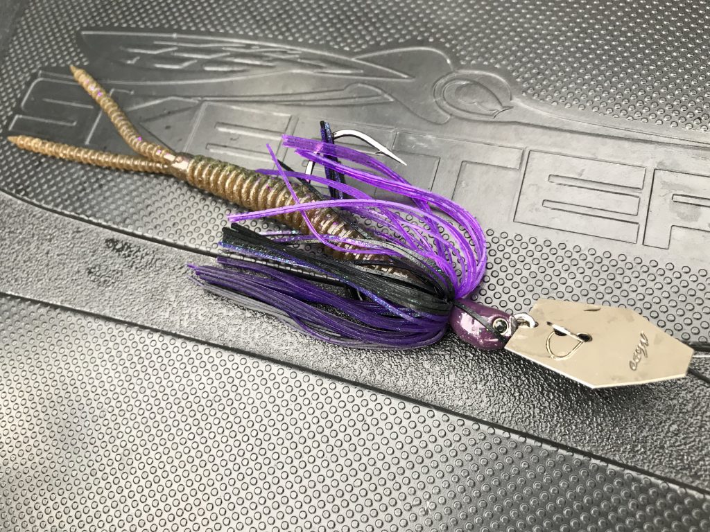 リアクション的要素も入ると重たいシンカーにボウワーム7インチをセットしたパンチショットリグが有効!