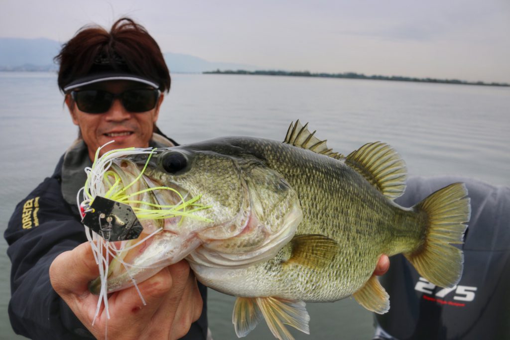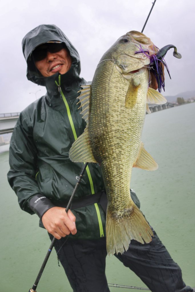 水質クリアアップしてきたらスイミングジグに変えて巻いてみたり、その時の水質や天候によってアピールの強弱を変えて狙っています。