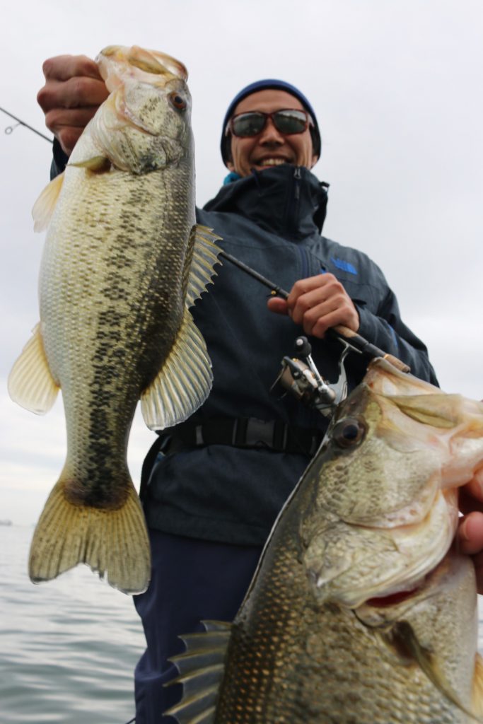 この時も夕方、1スポットに差しまくってきたので反応あった釣り方と場所をすぐに伝えて投げてもらい、
