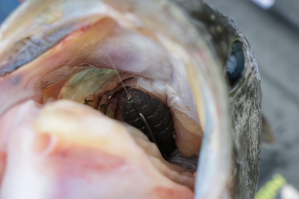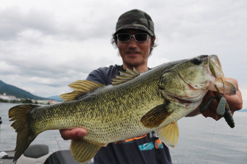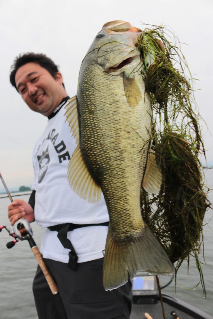 表層は出そうやけど出すの難しいので、シャローカバー際をエッジブレイカー3.6のネイルリグで狙って一発!!