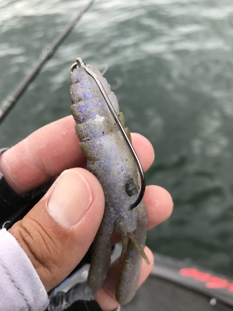 フワッとした物の方が食いやすい傾向なのと、天気的に広くみてまわりたかったのでエッジブレイカー3.6のネイルリグをメインに使っていき、