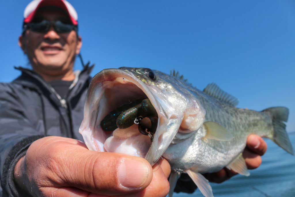 EGガイドフィールドスタッフの一平とむらっちもエッジブレイカー×ピンフリーショットのフリーリグで釣ってます♪
