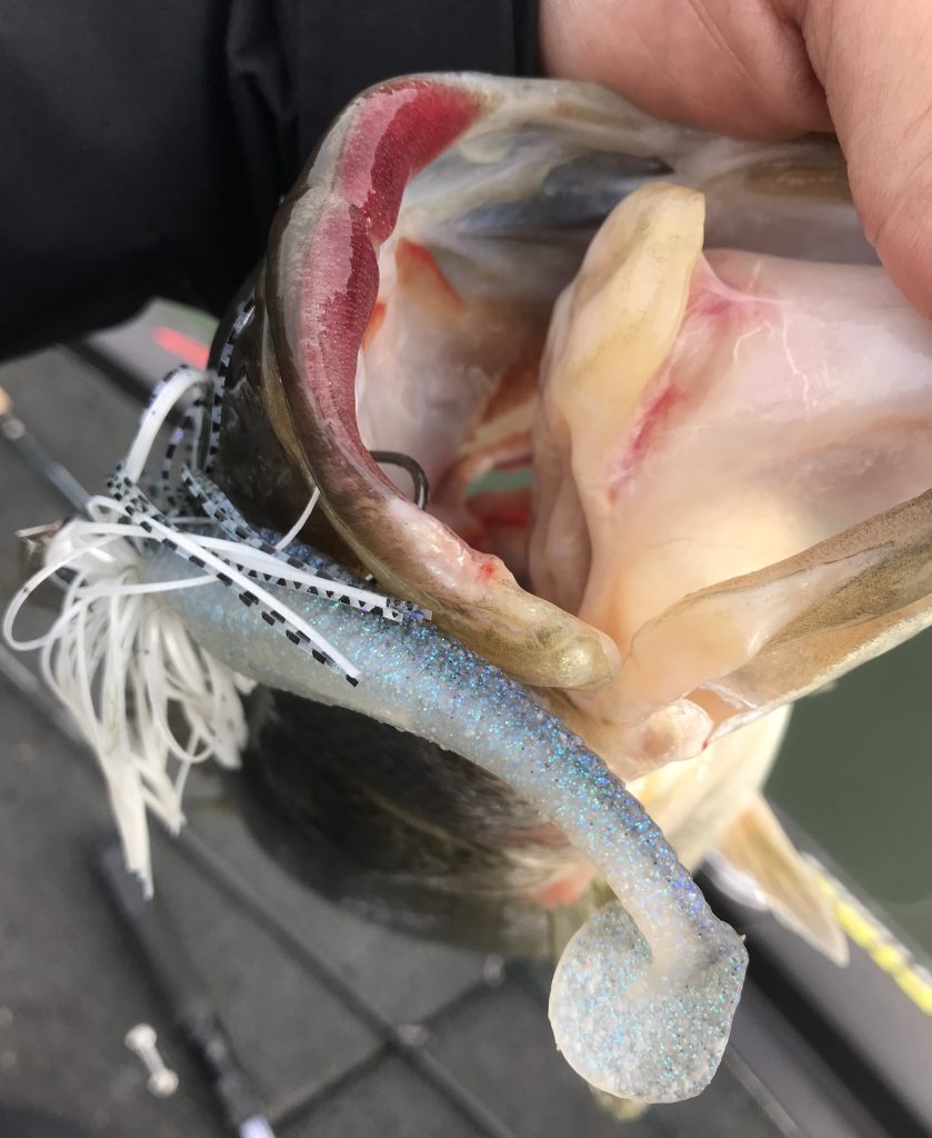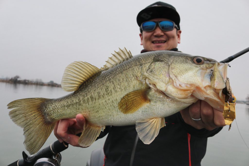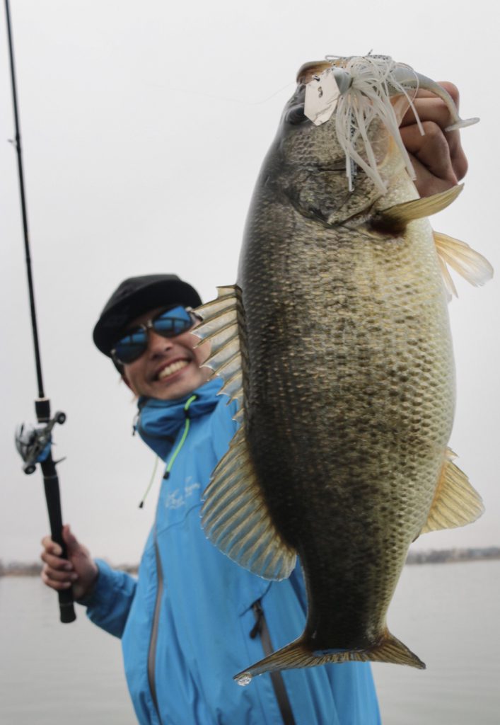 水質が濁ったり、少しクリアアップしたり、風がまともに当たったりと日によって状況は違うけどバスはずっと釣れてます!