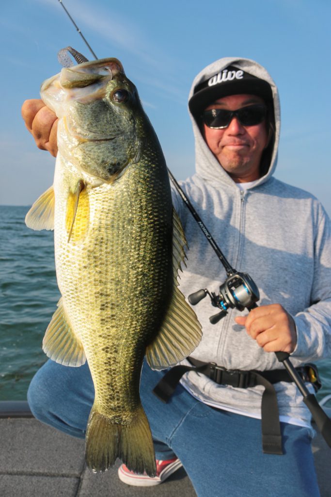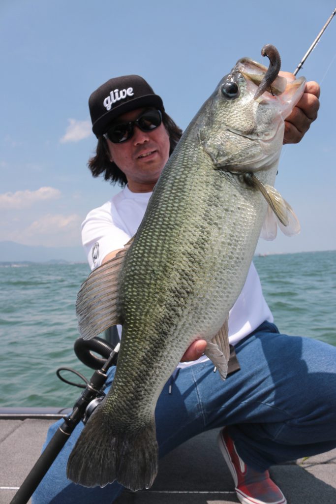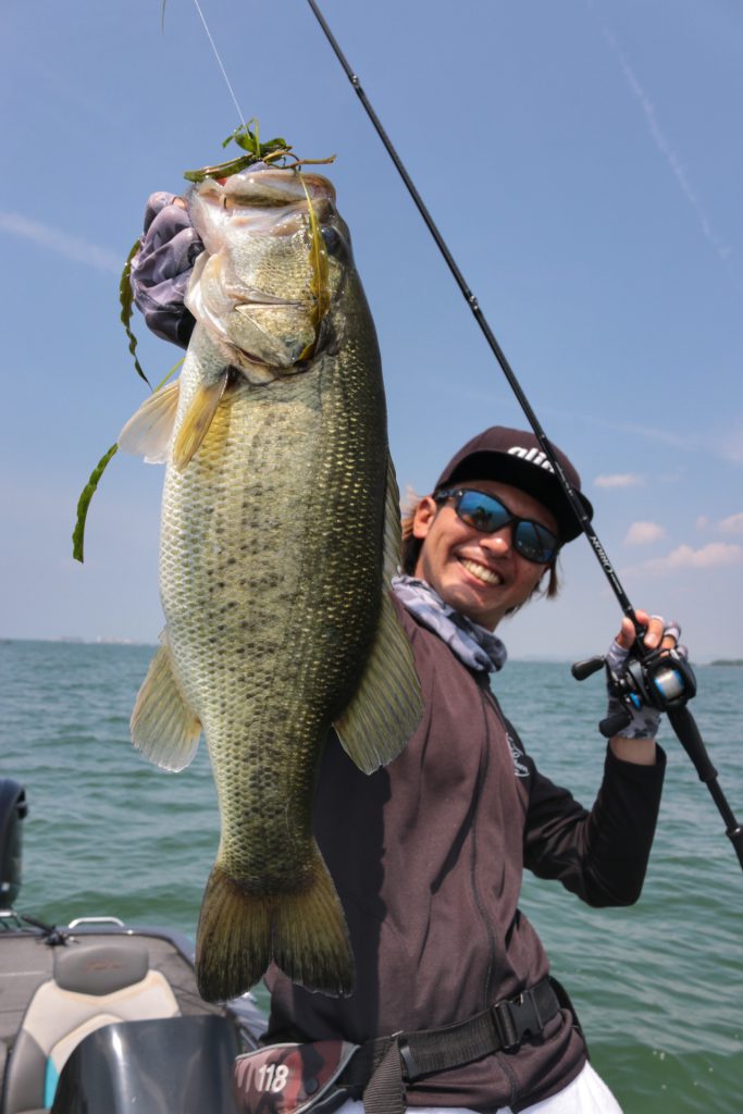エビモにシンカーが落ちてワームを落とし込んでいくのがめちゃめちゃ分かるなと思っていたら、ギューン!!だそうです。笑