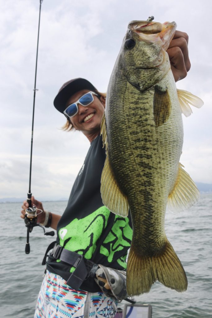 タックルはスムーズトルク65Mにヴァンキッシュ2500、ラインはPE0.8号にリーダー、バスザイルマジックハードR10lbのセットで!