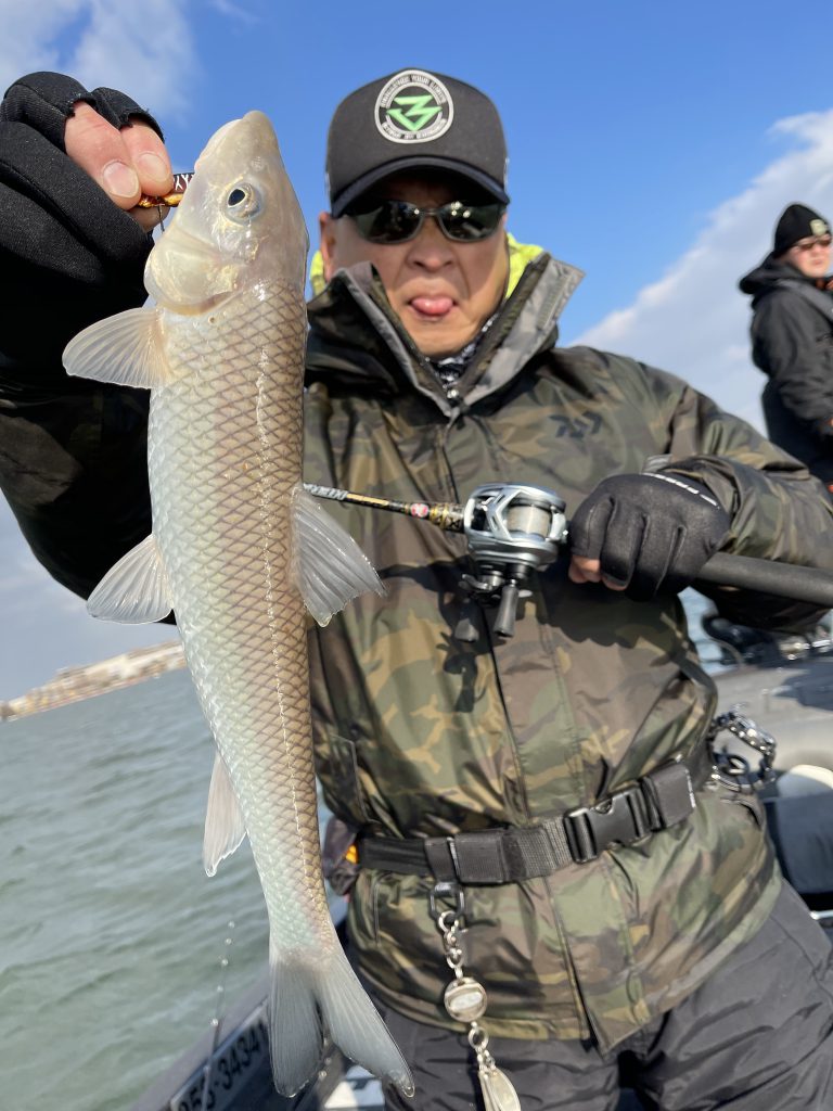 水温がガクンと下がった時はベイトも白っぽくなる。