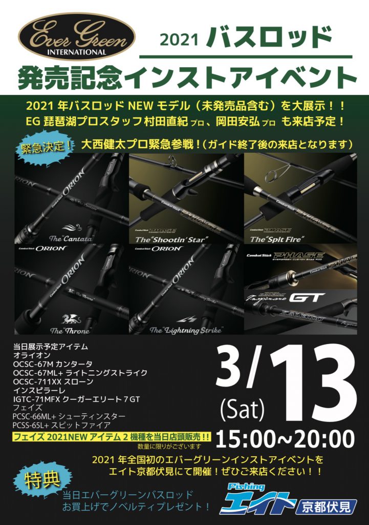 今週土曜日、3/13にエイト京都伏見店さんでEGロッドの展示イベントをやります!