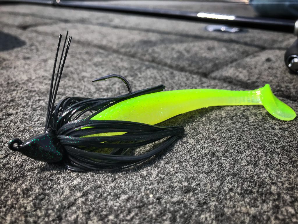 スイミングジグだと追いかけて食うので、ヘッドシェイカーのカラーを目立たせると丸のみしやすい傾向。