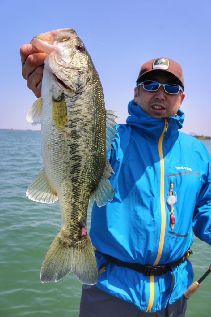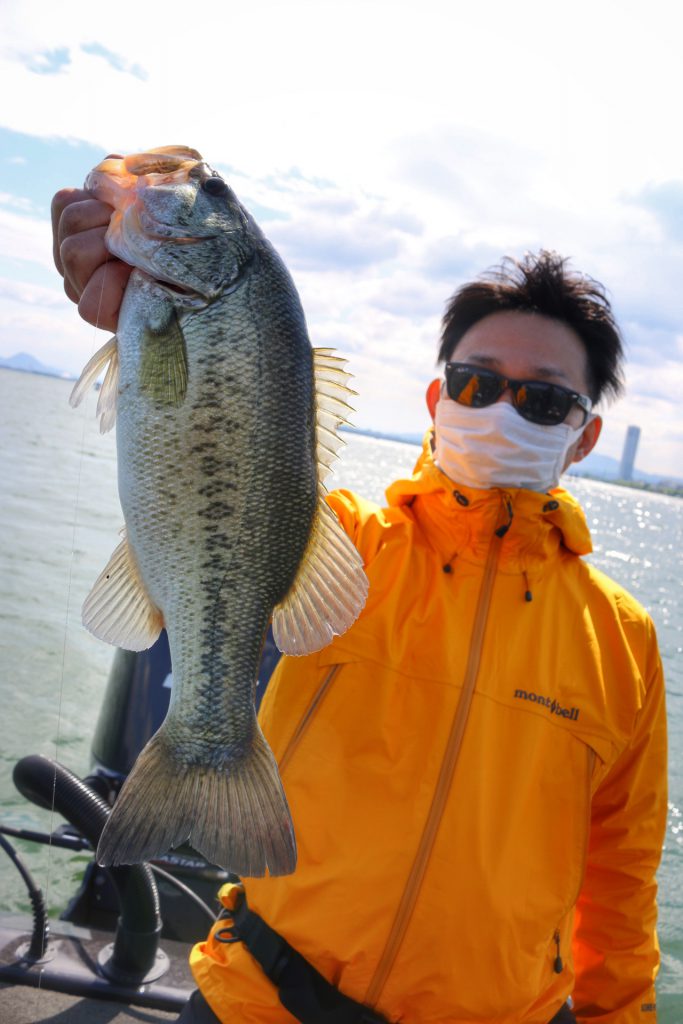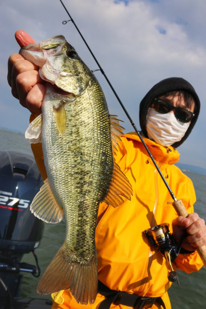 風が強く、ボートとめててもラインが流されるのでドラッキングで狙っていました!